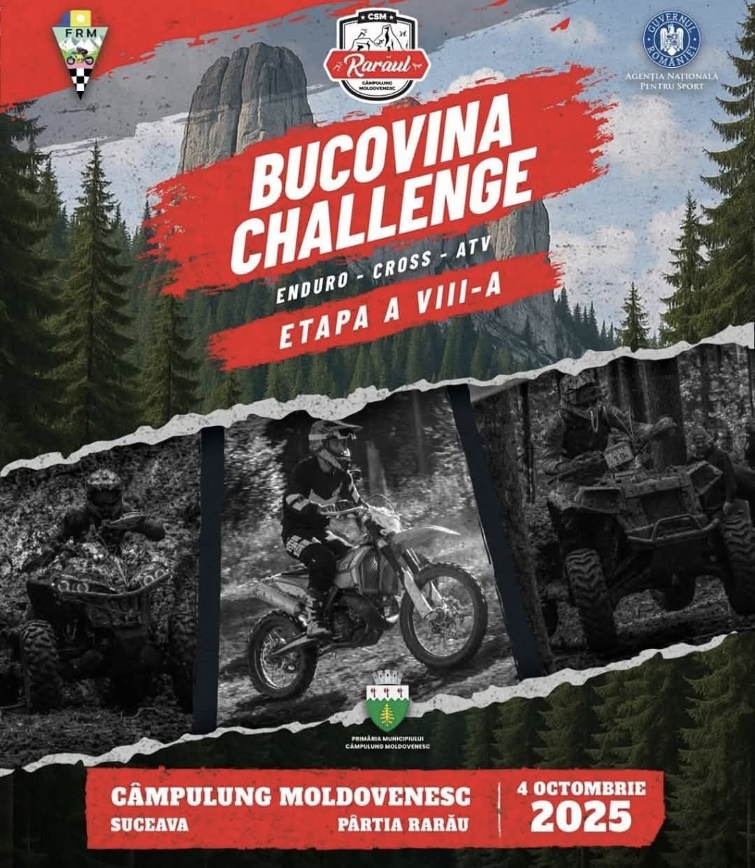 afisClubul Sportiv Raraul Campulung Moldovenesc organizeaza etapa a VIII-a a Campionatului National de Endurocross al României2025. Concursul Bucovina Challenge se va desfășura sâmbătă, 04 Octombrie, pe pârtia Rarău din localitatea Câmpulung Moldovenesc, județul Suceava.