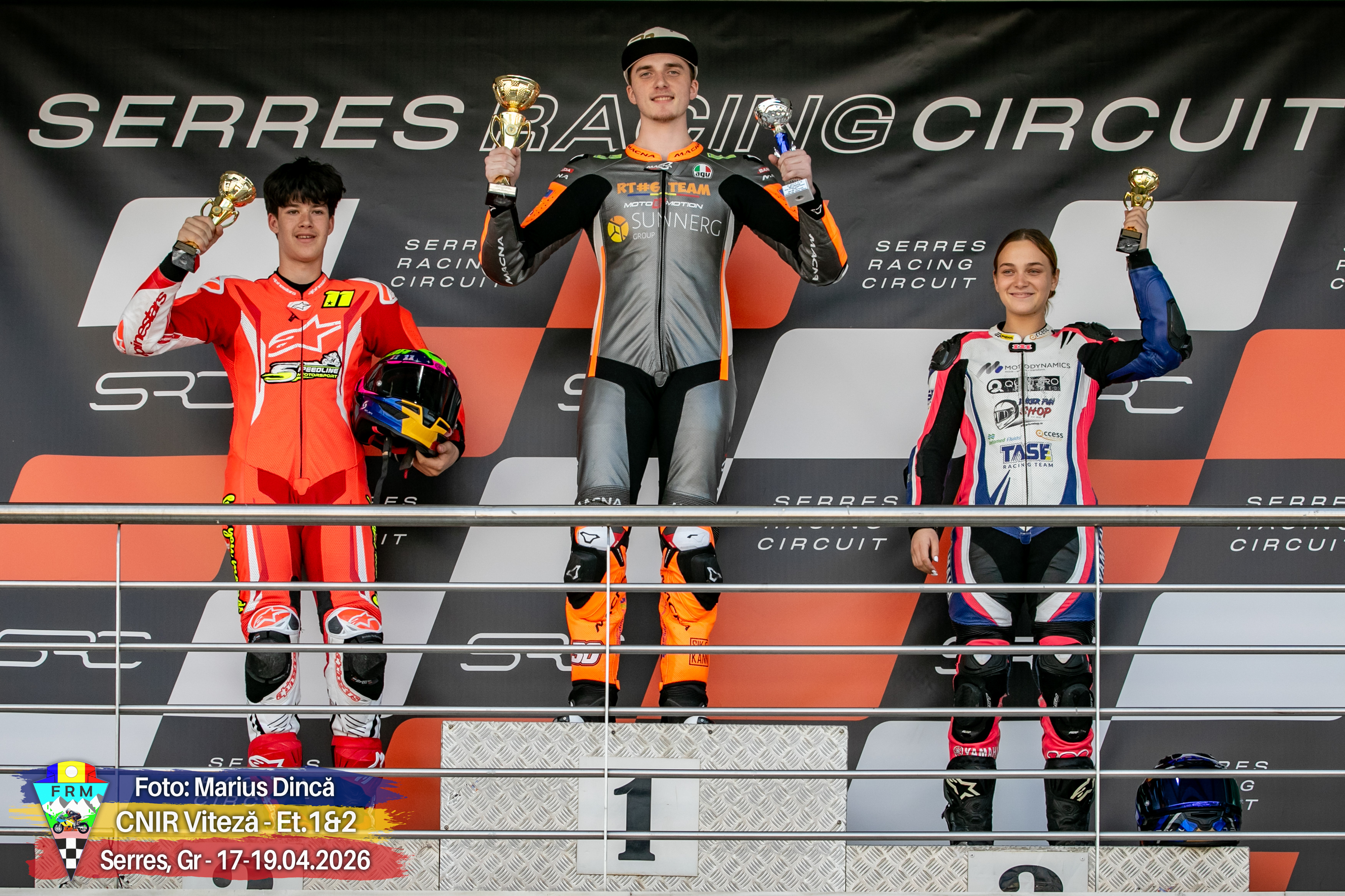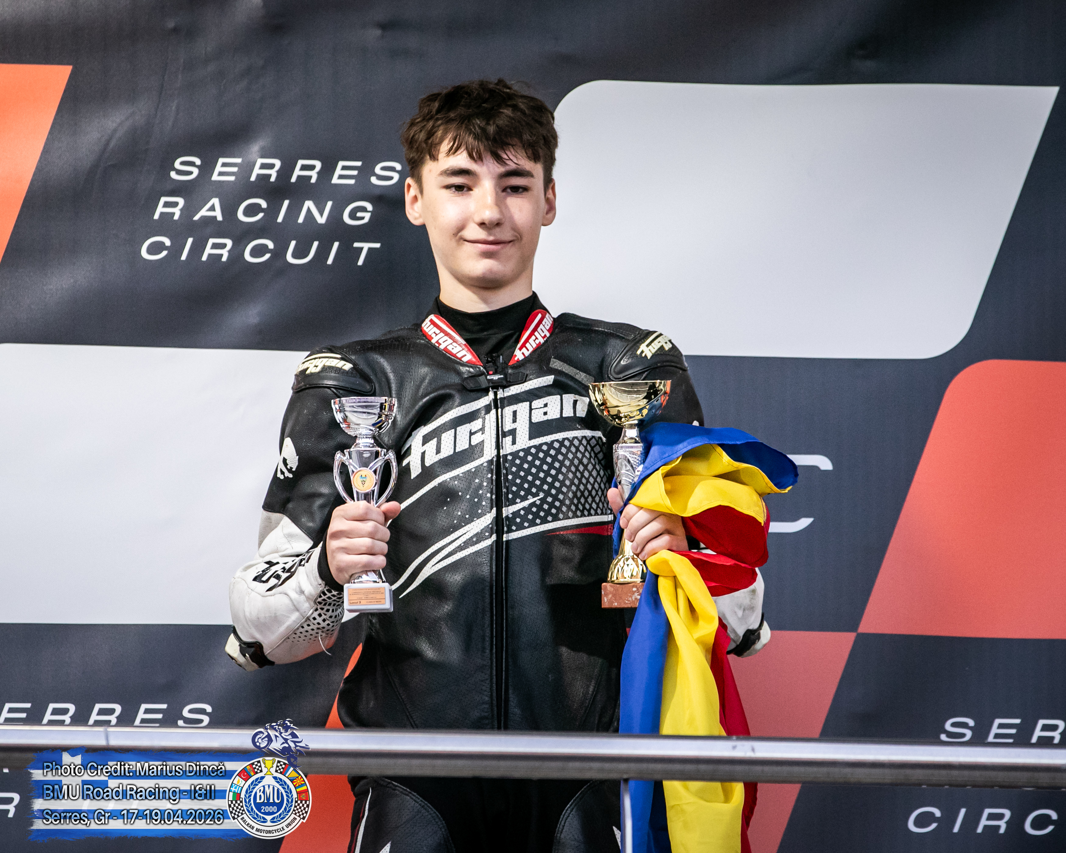 Felicitări echipei României și tuturor celor care au urcat pe podiumul național și pe cel din Campionatul European Balkan Motorcycling Union – BMU în prima etapă din sezonul competițional 2026! A fost un weekend de vis în ciuda reprizele de ploaie torențială de sâmbătă, sau poate tocmai datorită lor, pentru că piloții români au dovedit curaj și un bun control pe o pistă udă. Etapele balcanice au fost organizată de către Federația Greacă de Motociclism, iar cele naționale de către clubul VIK Power Arad.