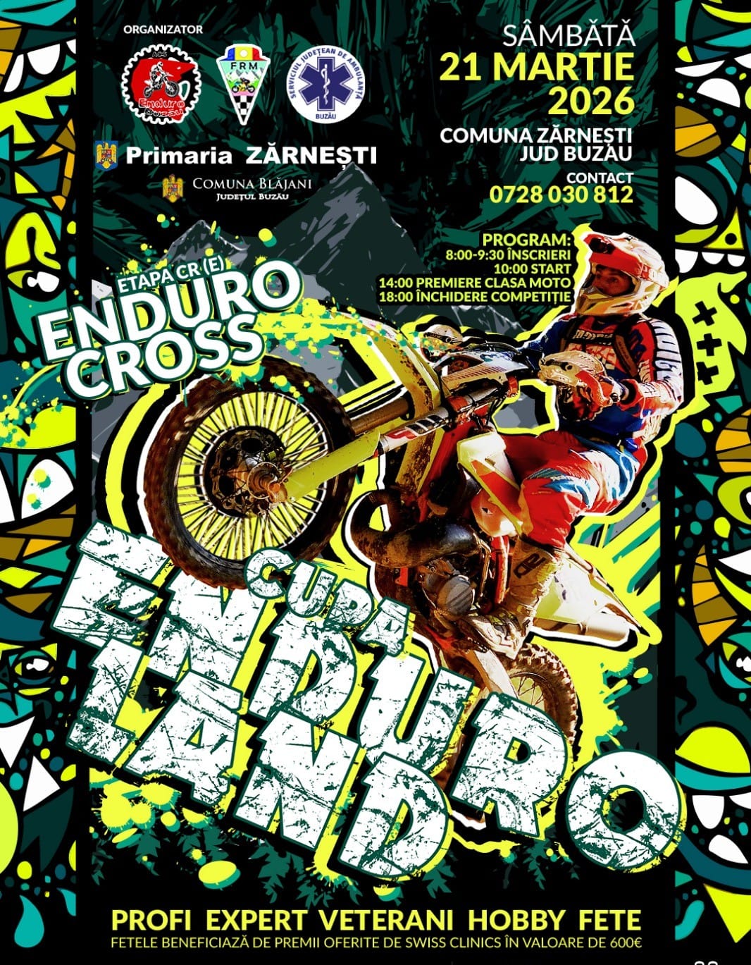 afisVă invităm în număr cât mai mare să asistați la deschiderea oficială a Sezonului Competițional 2026! Când: sâmbătă 21 Martie. Unde: lângă Buzău, în apropiere de comuna Mărăcineni (mai exact în satul Blăjani, locația exactă fiind disponibilă aici). Ce va fi acolo: Cupa Enduroland (etapă a Campionatului Regional de Endurocross al Zonei de Est). La ce oră dăm startul: 10:00. Cine organizează: ACS Enduro Buzău.